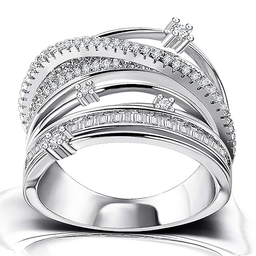 Platinum Plated Cocktail Statement Ring Intertwined Crossover Cubic Zirconia Wide Wedding Band Rings For Women Girls