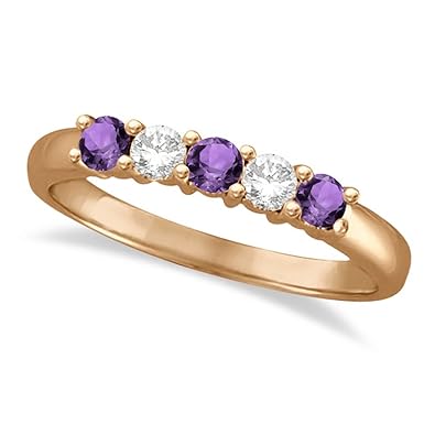 Amazon Com 14k Gold Diamond And Amethyst Five Stone Ring