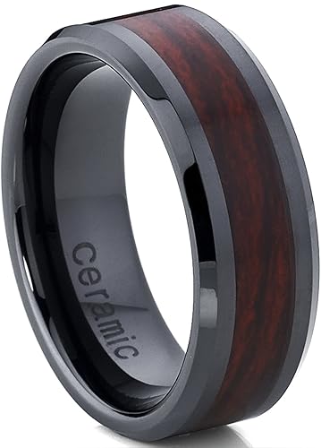 Ultimate Metals Co Men S Women S Black Ceramic Unisex Wedding Band Ring With Wood Inlay 8mm Comfort Fit Sizes 5 15