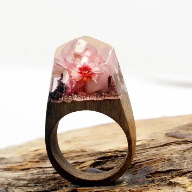 Danze Clear Resin Wood Wedding Rings Magic Forest Wooden Ring For Women Men Creative Handmade Dried Flower Rings Fashion Jewelry