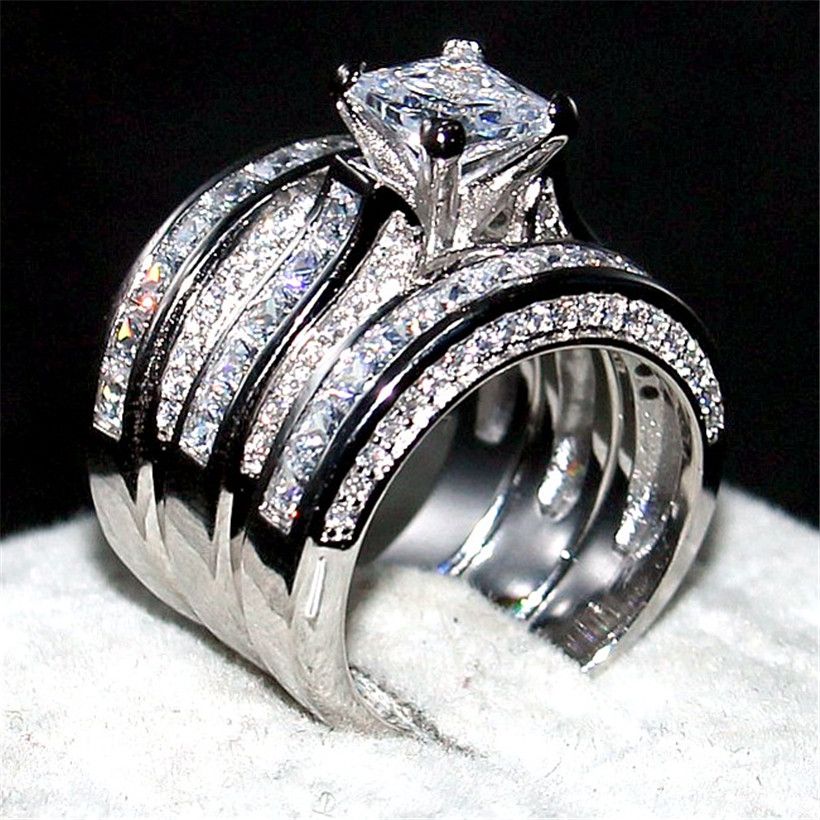 Luxury 100 Really 925 Sterling Silver Ring Set 3 In 1 Wedding Band Jewelry For Women 20ct 7 7mm Princess Cut Topaz Gemstone Rings Finger
