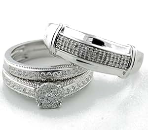 Couple Ring Bridal Sets His Hers 10k White Gold Plated White Aaa Cz Wedding Engagement Ring Band Set