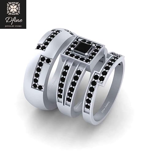Amazon Com Solid 18k White Gold Black Onyx His And Her Wedding Ring