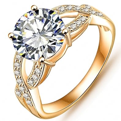 Fendina Womens Infinity Solitaire Wedding Engagement Rings Best Promise Rings For Her Round Cut Cz Crystal 18k Gold Plated