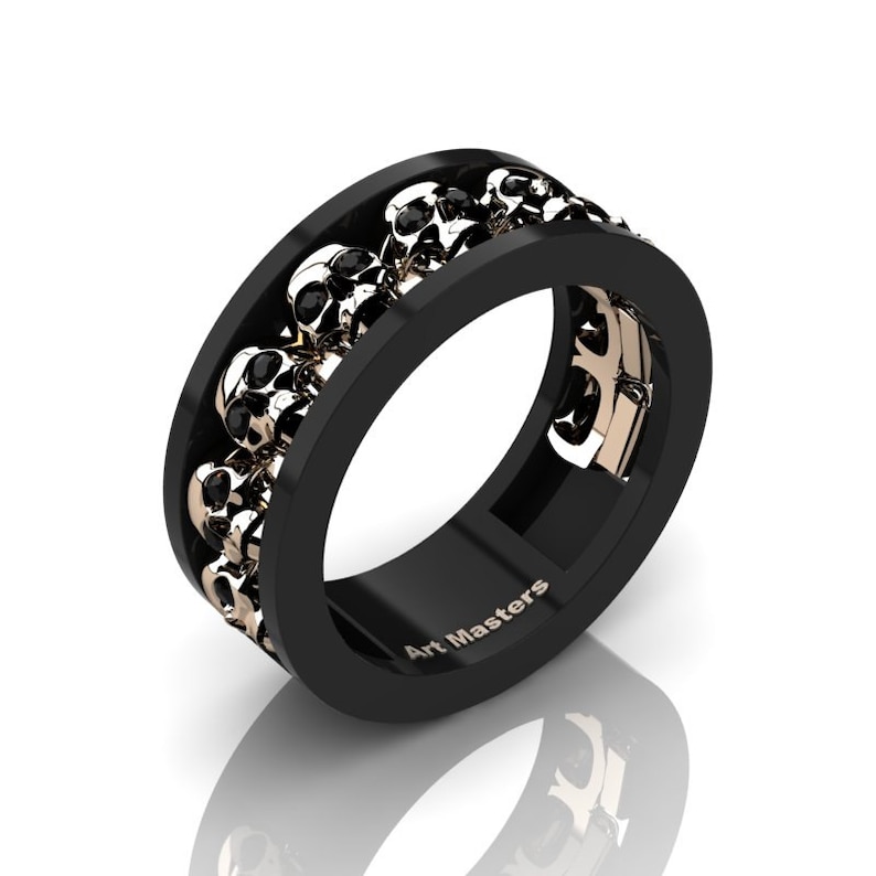 Mens Modern 14k Black And Rose Gold Black Diamond Skull Channel Cluster Wedding Ring R913 14kbrgbd