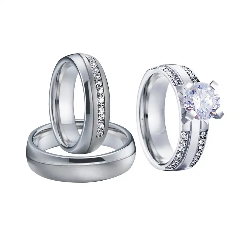 Anniversary Allainces Wedding Rings For Men Silver White Gold Color Bridal Sets Jewelry Engagement Couple Rings For Women