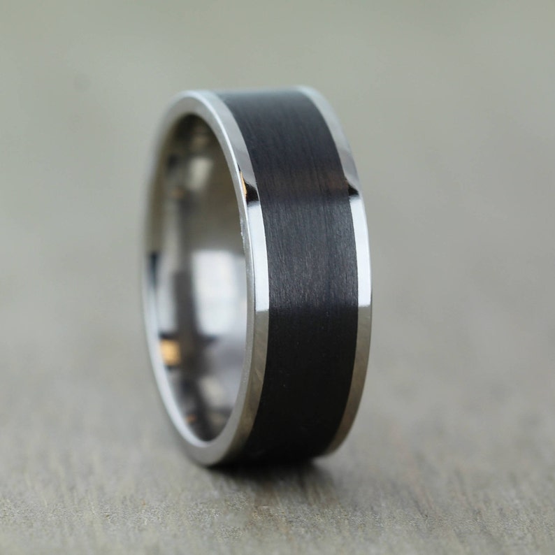 Cavalier jewelers 8mm mens tungsten carbide ring wedding band with black carbon fiber inlay. Exuding contemporary design flair this sleek titanium ring is created to be incredibly hardwearing. Carbon fibre designs information our range of mens carbon fibre inlay rings are available in a choice of colours from our very popular black carbon fibre inlays as well as white blue and red available in some designs.