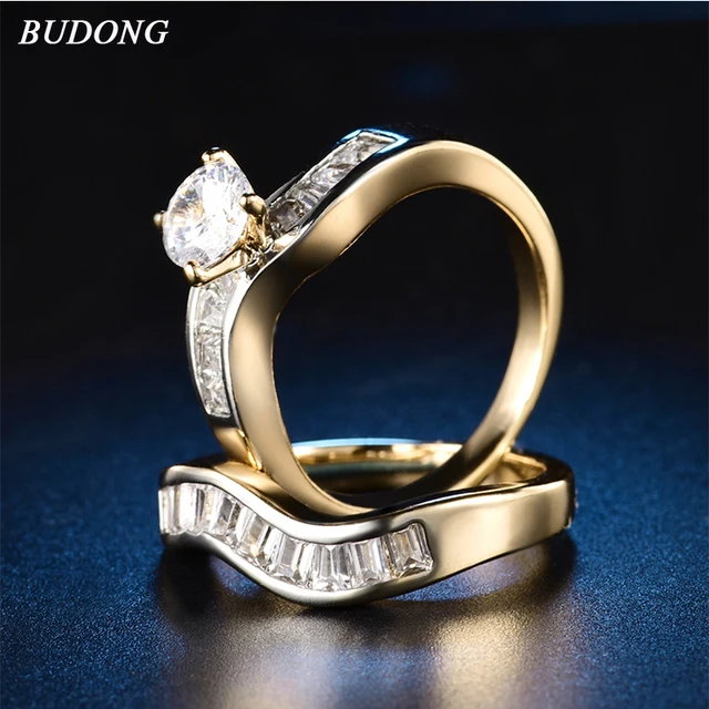 Us 7 99 10 Off Budong Hollow Rings 2 Rounds Cubic Zirconia Paved Engagement Ring Sets Wave Crystal Wedding Jewelry For Women Party Gift In Wedding
