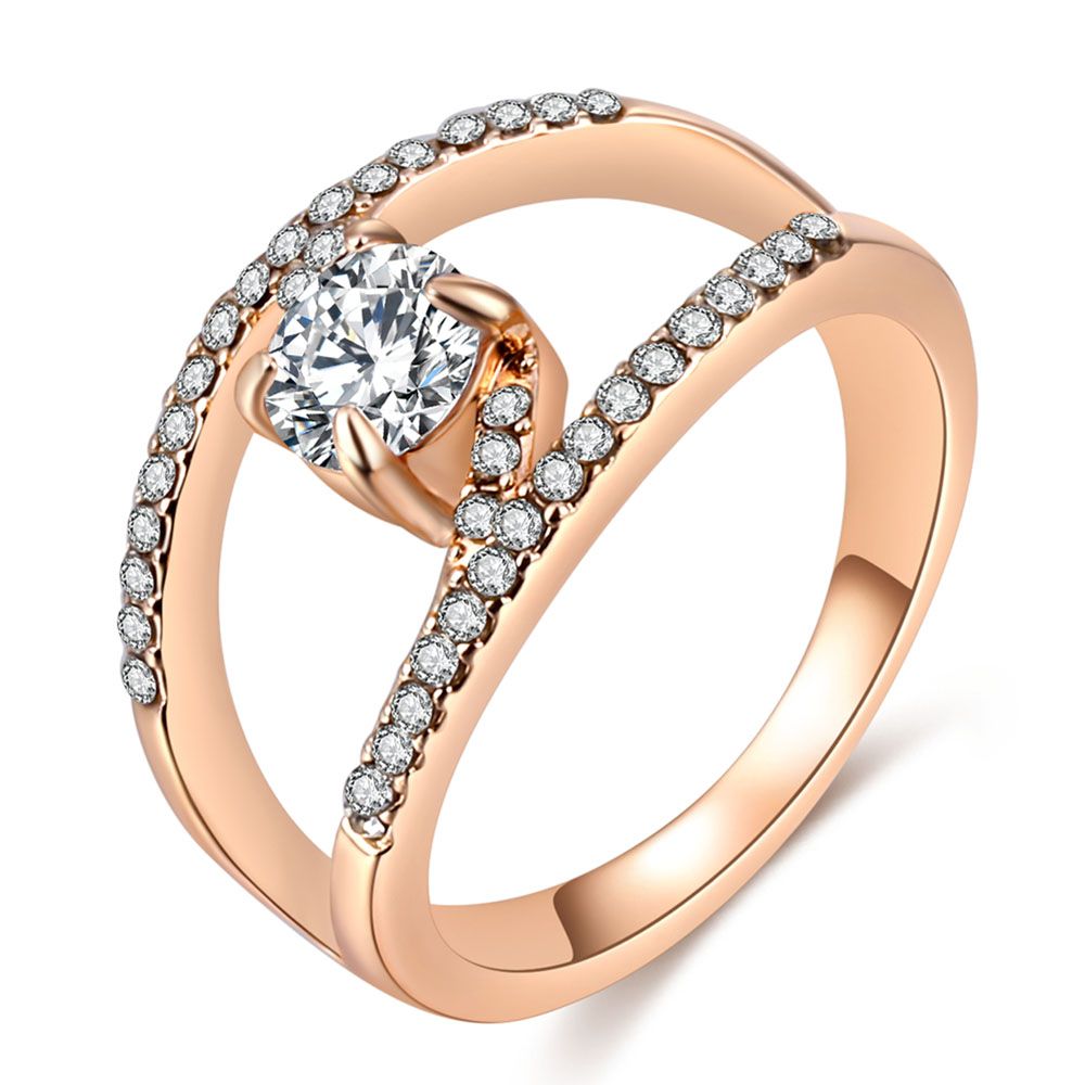 New Design Rose Gold Zircon Crystal Wedding Ring For Women Geometric Charm Engagement Jewelry Fashion Geometric Luxury Gift