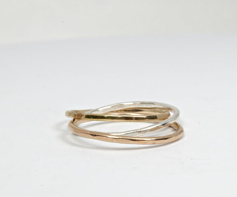 Interlocking Ring Hammered Russian Ring Silver Gold Filled And Rose Gold Filled 3 Color Ring Mixed Metal Ring