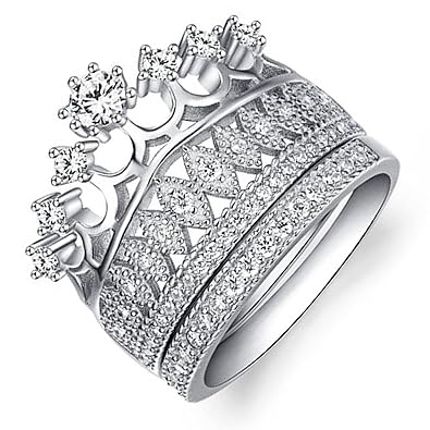 Zhenyul Women Princess Crown Engagement Wedding Bridal Ring Sets Cz
