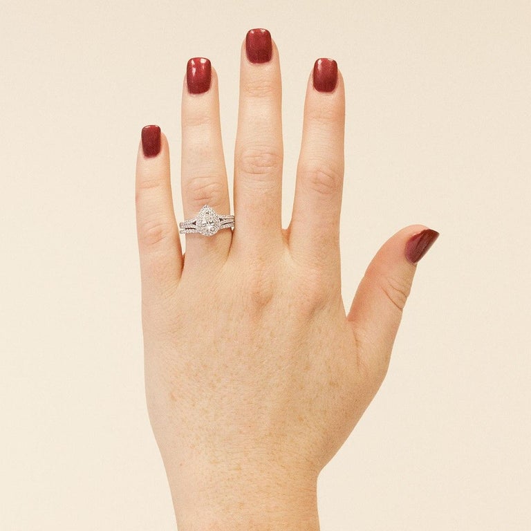 White Gold Pear Diamond Double Halo Engagement Ring Wedding Band Set