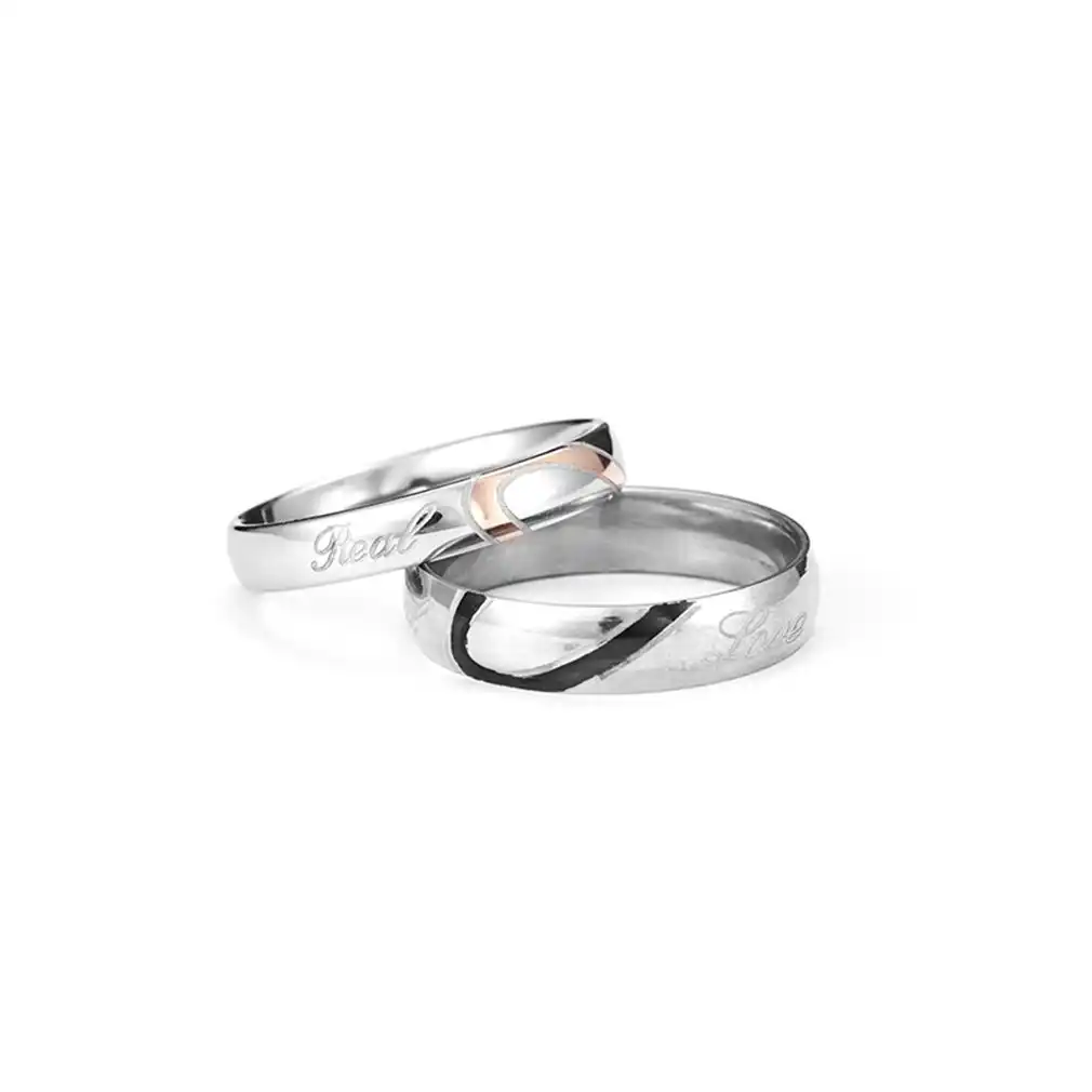 Fashion Couple Heart Shape Rings Matching Titanium Promise Ring For Couple 316l Stainless Steel Wedding Bands Lovers Ring