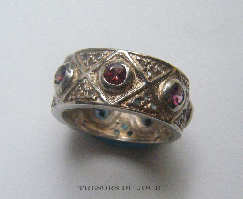 Unique Ruby Spinel Ring Gemstone Wedding Band Medieval Wedding Ring Red Spinels Custom Wedding Ring Byzantine Wedding Band Anniversary Band