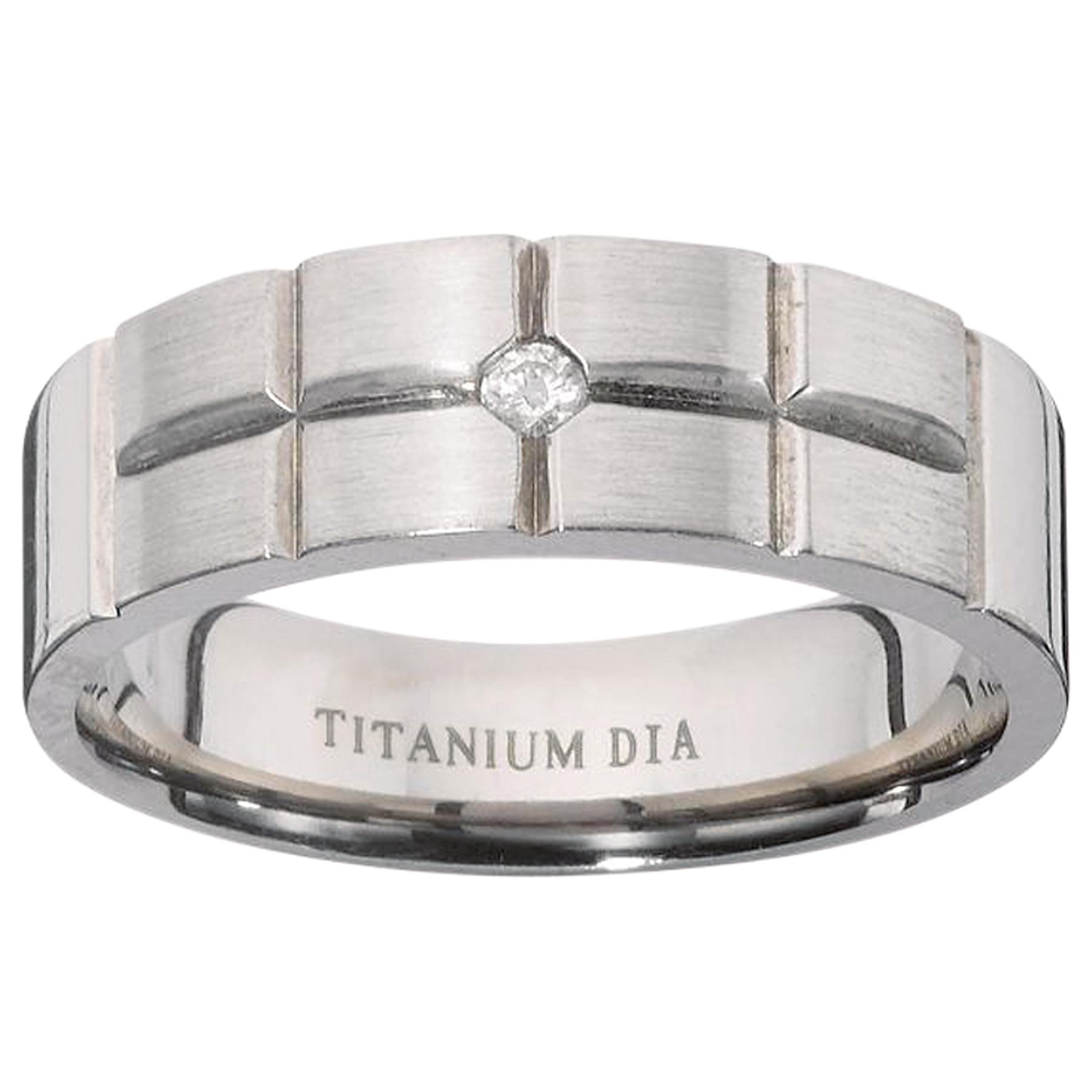 Titanium Diamond Set Fancy Cut Mens Ring
