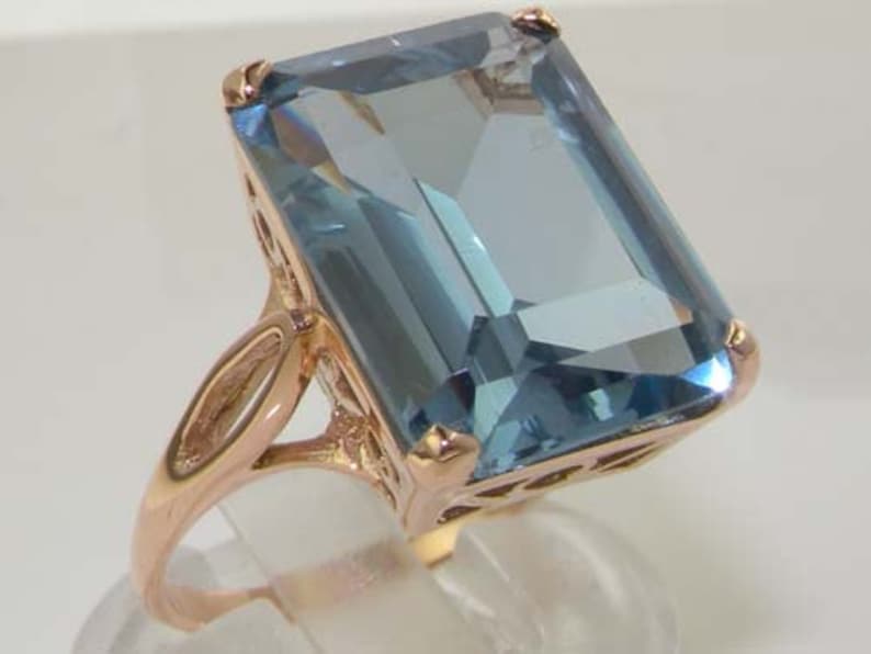 Royal Wedding Ring Meghan Markle Princess Diana 16x12mm 9k Rose Gold Octagon Cut Lab Created Aquamarine Solitaire Ring