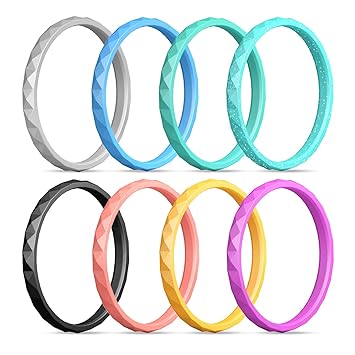 Egnaro Silicone Wedding Ring Women Silicone Wedding Ring Thin Silicone Stackable Rings Wedding Bands Stylish Pattern Comfortable Fit Skin Safe