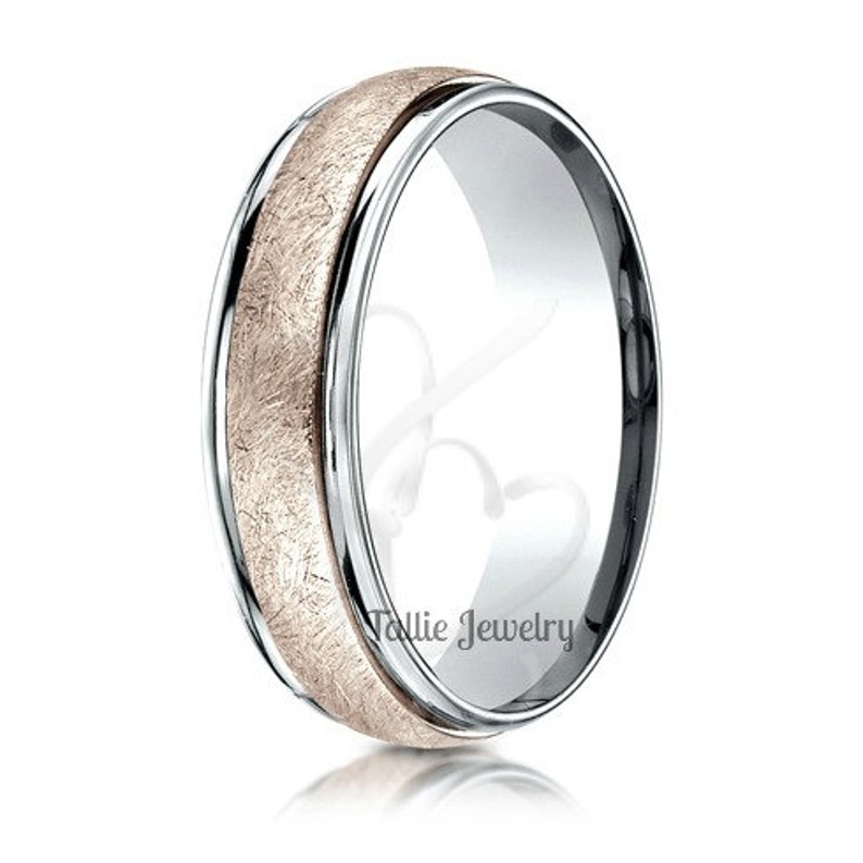 Two Tone Gold Wedding Rings 6mm 10k 14k White And Rose Gold Mens Or Womens Wedding Rings Two Tone Wedding Bands Matching Wedding Rings
