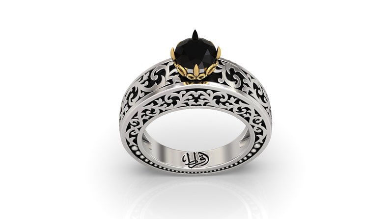 Gold Black Diamond Arabian Islamic Engagement Wedding Ring Tow Tone Unique Luxury Engraved Ring Oriental Fine Jewelry Promise Ring