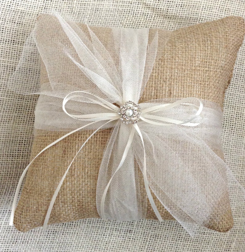 Burlap Ring Bearer Pillow Burlap Ring Pillow Wedding Ring Pillow Ring Bearer Pillow Rustic Glam Ring Pillow Rustic Luxe Ring Pillow