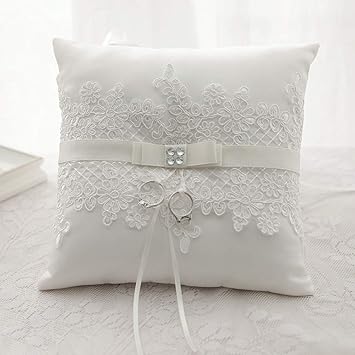 Toshine Wedding Ring Bearer Pillow Ivory Satin Lace Wedding Ring Pillow Cushion Flower Ring Bearer Holder Wedding Ceremony