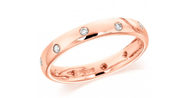 18ct Rose Gold Ladies 3mm Wedding Ring With Alternate Set Diamonds All Around Total Diamond Weight 15pts
