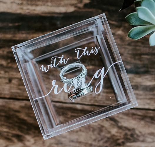 Clear Glass Look Acrylic Engagement Ring Bearer Box Holder Custom Modern Wedding Rings Box Geometric Minimalist Or Rustic Ring Holder