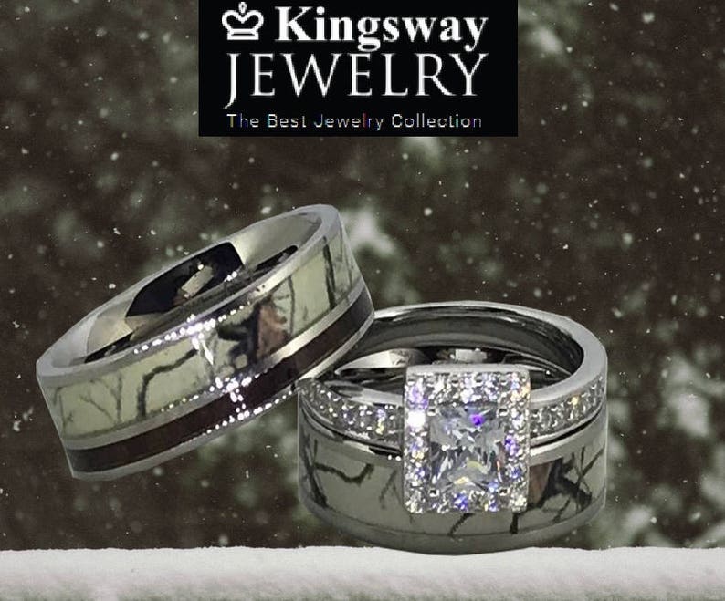 Kingswayjewelry Mens Womens Camo Engagement Wedding Rings Set Silver Titanium