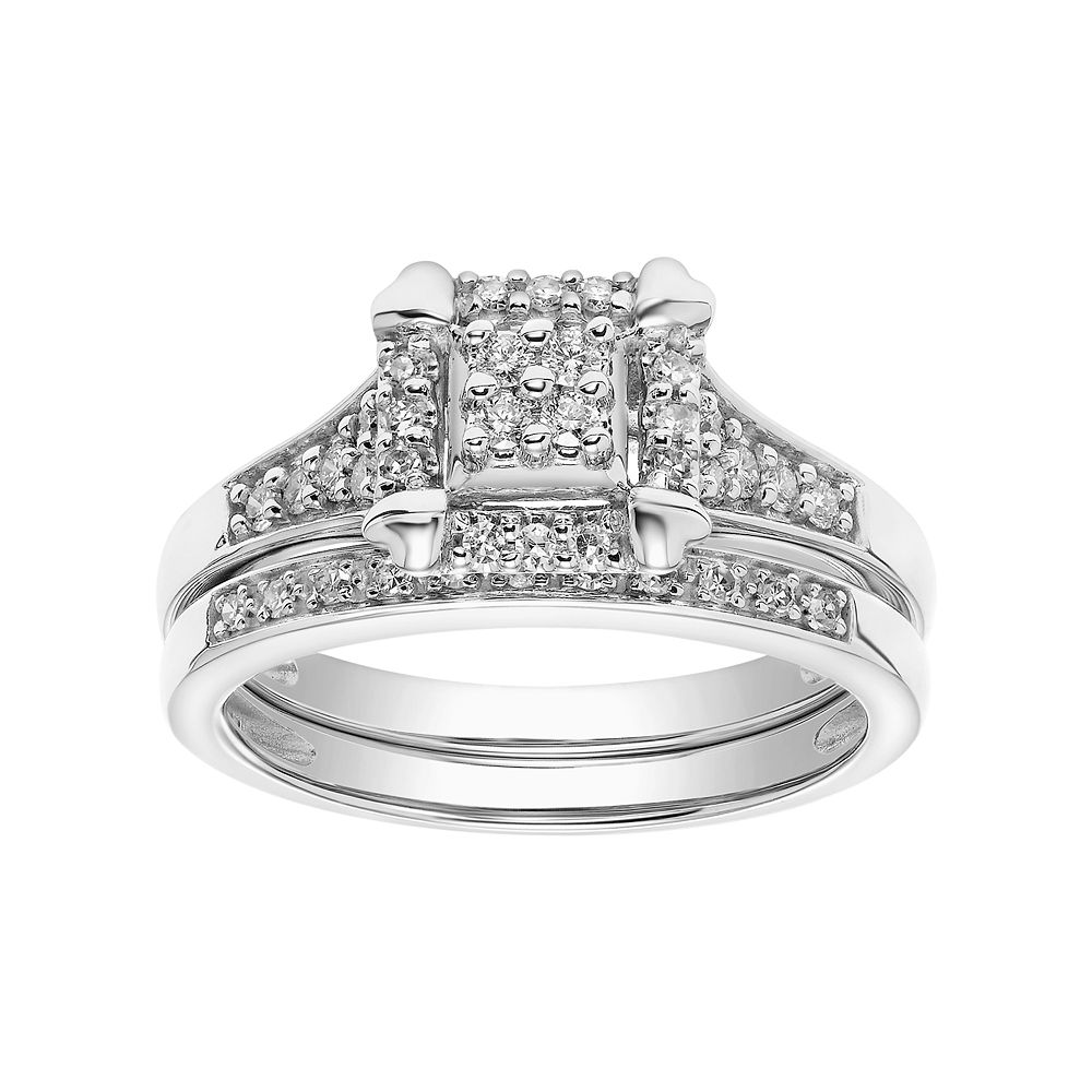 Lovemark 10k White Gold 1 3 Carat T W Square Cluster Engagement Ring Set
