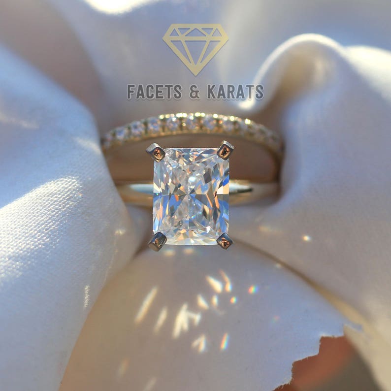 3 50 Ct Radiant Cut Wedding Ring Set Bridal Set Of 2 In 14k Solid Yellow Gold Solitaire Engagement Ring With Wedding Band Bridal Ring Sets