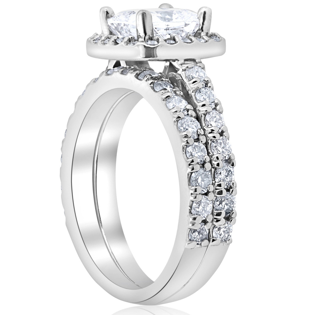 3 Ct Cushion Halo Diamond Engagement Wedding Ring Set 14k White Gold F Si 1 Si 2