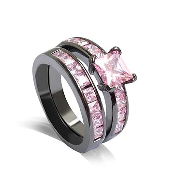 Amazon Com Newest Women Ring 2 In 1 Vintage Pink Diamond Black