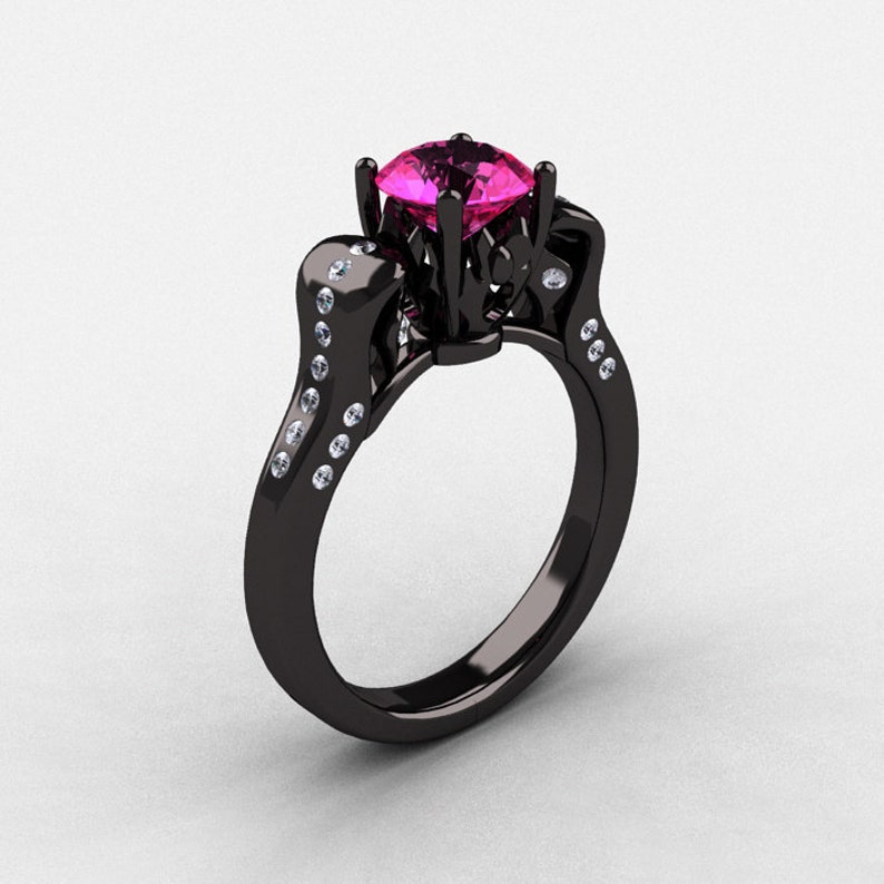 Black Gold Pink Sapphire Engagement Ring Unique Ring Design