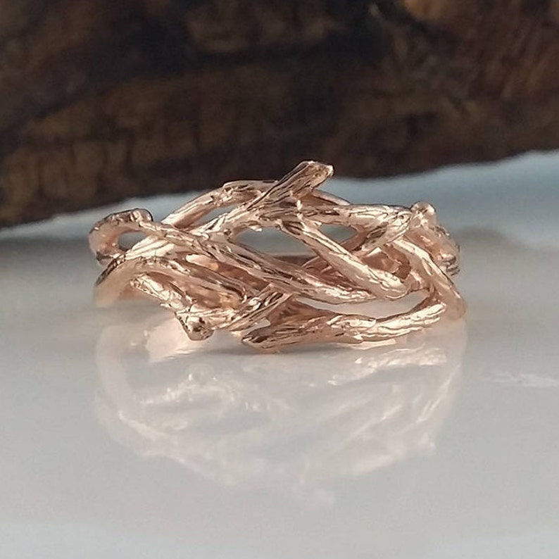 Women S Branch Wedding Band Twig Engagement Ring 14k 18k Yellow White Rose Green Gold Ring Hand Sculpted By Dawn Vertrees Jewelry