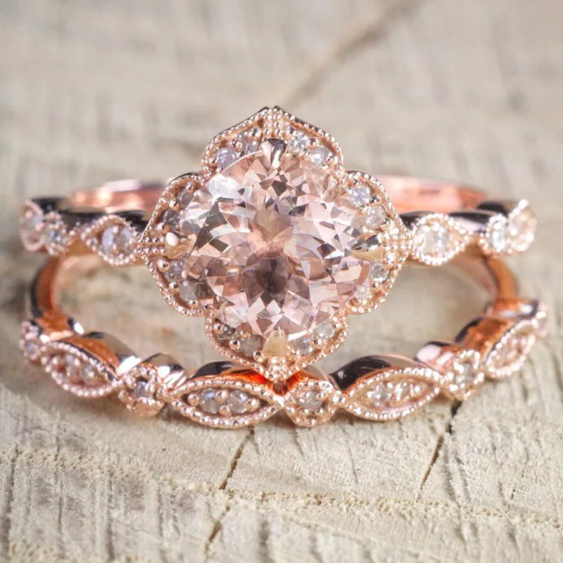 2 Pcs Set Crystal Ring Jewelry Rose Gold Color Wedding Rings For