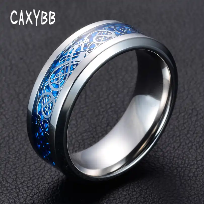 8mm Dragon Ring Blue Carbon Fiber Wedding Rings For Women 316l Stainless Steel Men Jewelry Ring Wholesale Dropshipping