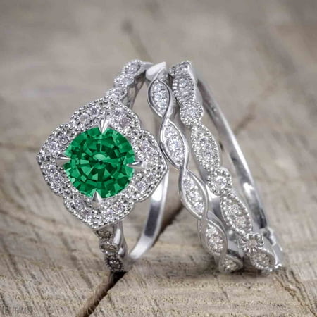 Bestselling 2 50 Carat Trio Wedding Ring Set With Emerald And Diamond On White Gold For Her