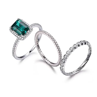 Amazon Com 14k White Gold Green Emerald Wedding Ring Set 6x8mm