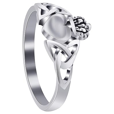 Gem Avenue 925 Sterling Silver Celtic Knot Friendship And Love Heart Irish Claddagh Womens Ring