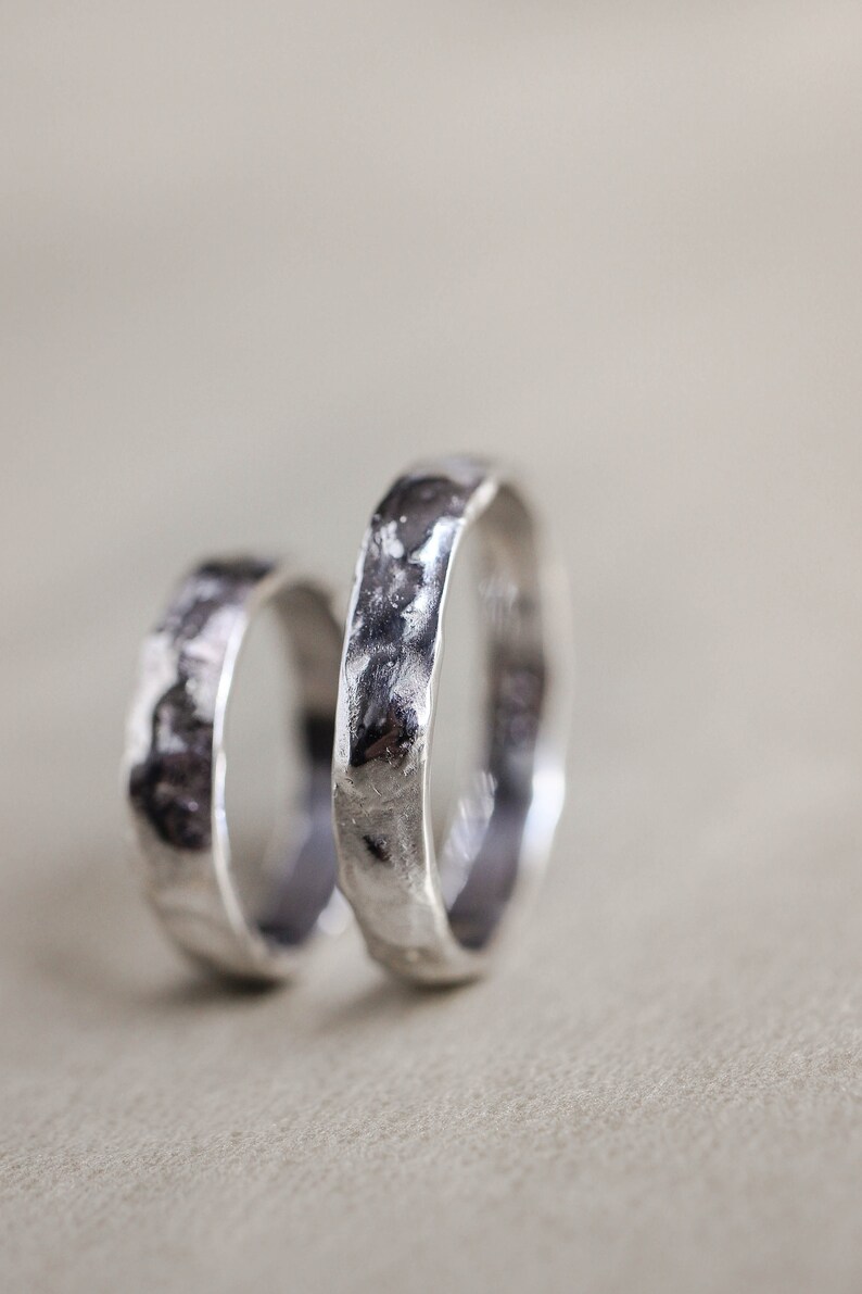 Black Silver Wedding Bands Matching Rings For Him And Her His And Hers Promise Rings Hammered Rings Silver Matching Wedding Rings Silver