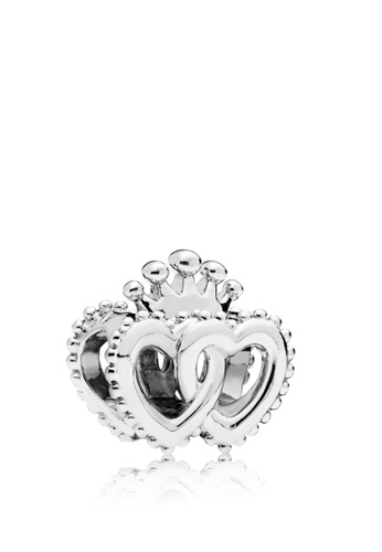 Interlocked Crowned Hearts Silver Charm