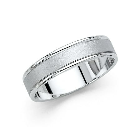 Solid 14k White Gold Wedding Ring Plain Band Sand Polished Finish Classic Style Men Women 5 Mm