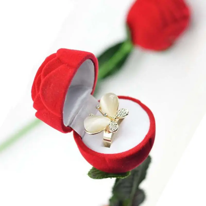 Us 1 24 2016 Hot Gift Red Rose Velvet Engagement Wedding Ring Pendant Jewelry Box Case For Women High Quality In Jewelry Packaging Display From