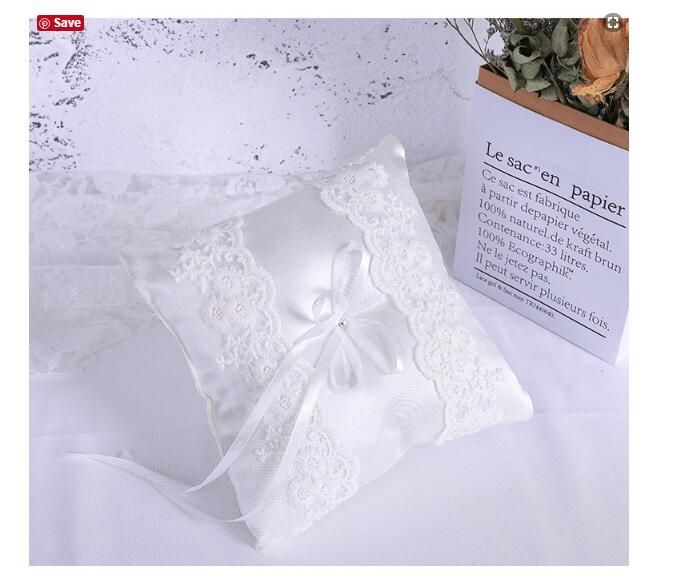 2018 New Arrival White Wedding Ring Pillow Wedding Favor Square Handmade Design Silk Ribbon Special Unique Ring Pillow Decorations 18 5