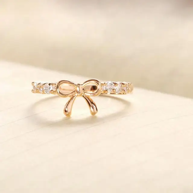 Korean Jewelry Rings 2018 Ladies New Fashion Design Simple Crystal Wedding Bands Rings With Bowknot Rings 814