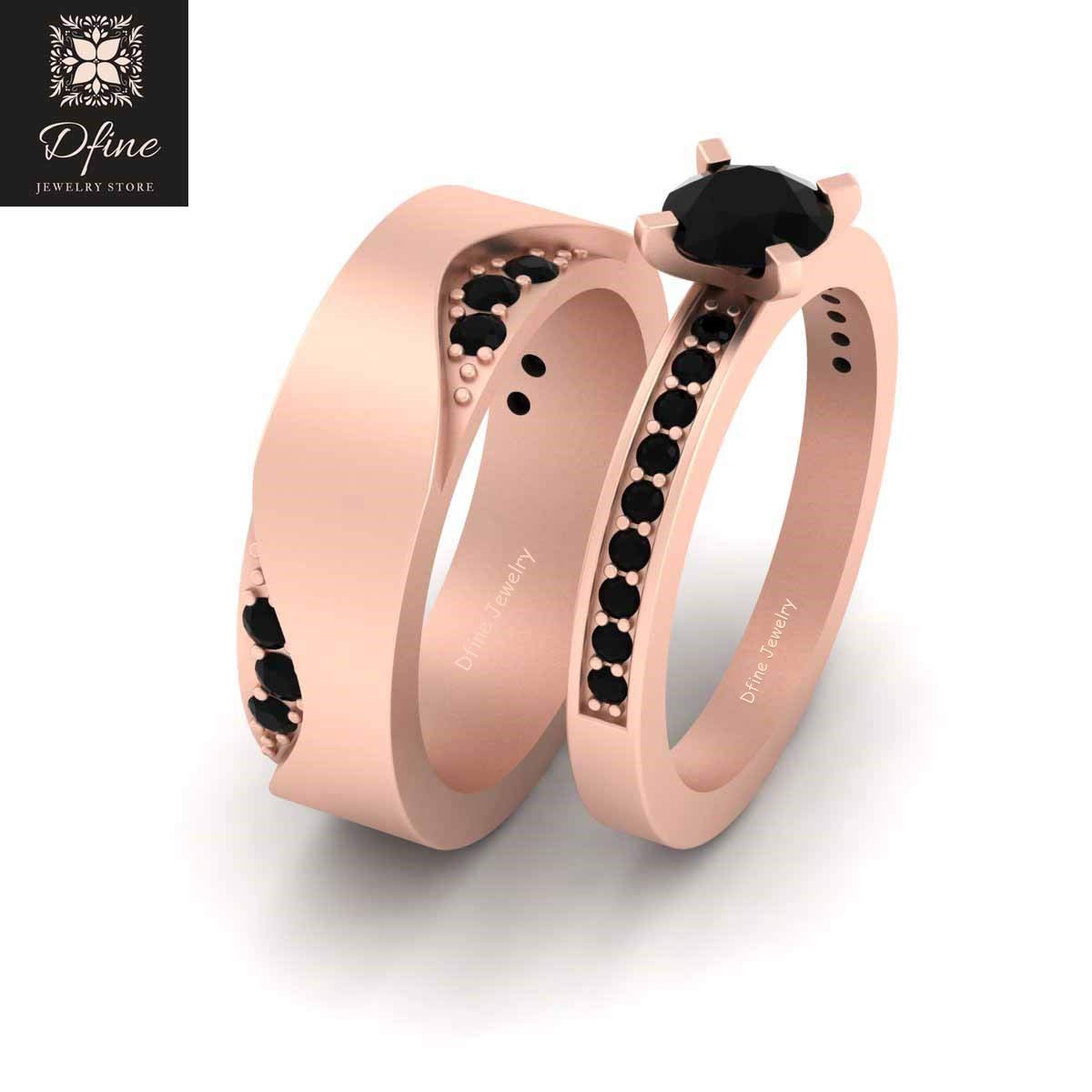Rose Gold Wedding Ring Sets For Bride And Groom
