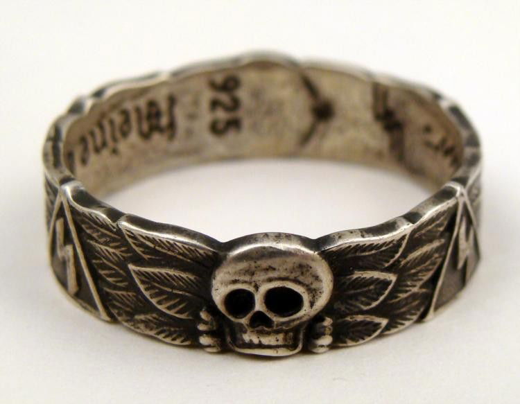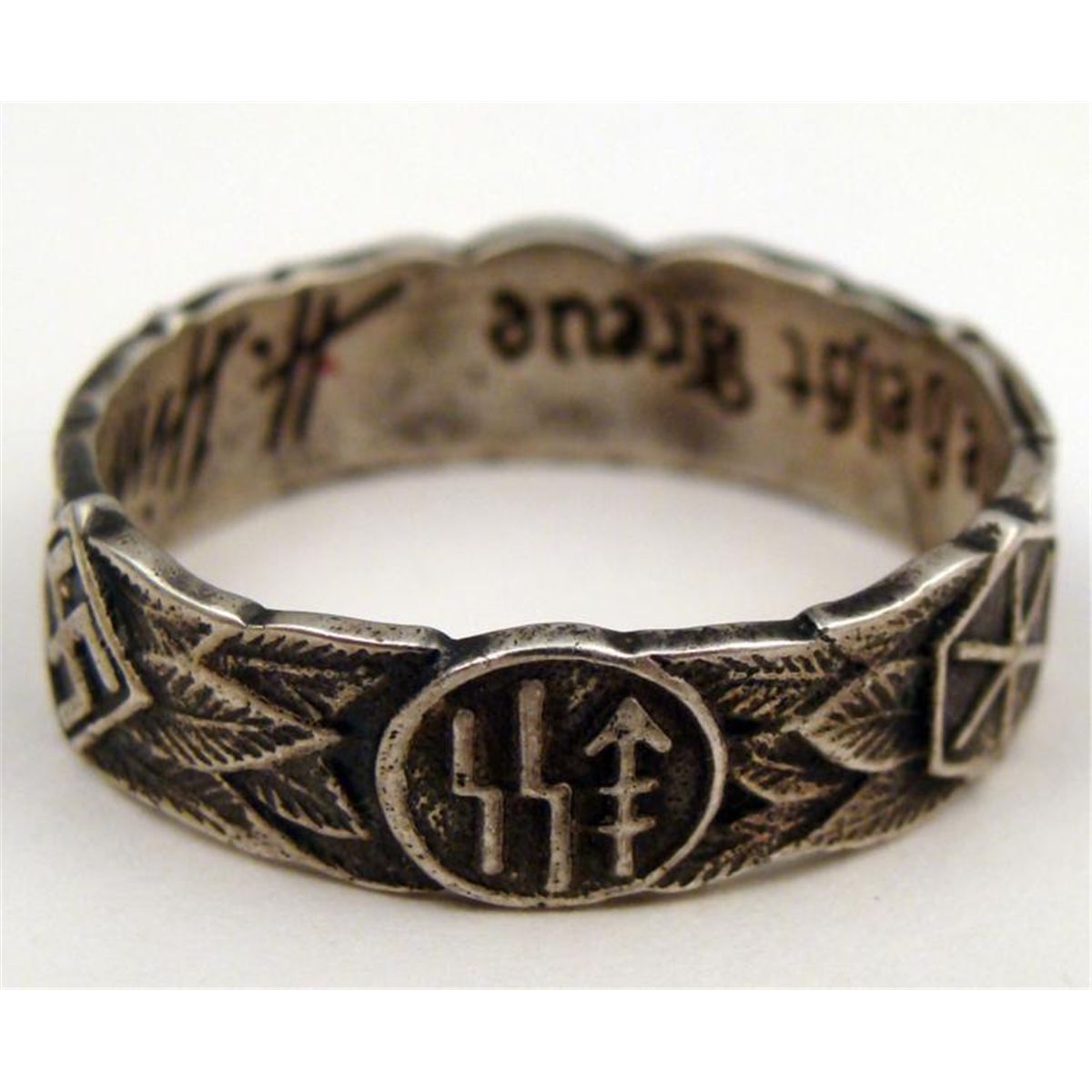 Reproduction Ss Wedding Ring With Skull Swatiska Runes