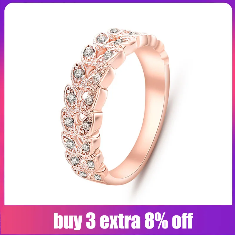 Funique 2019 Top Quality Rose Gold Classical Zircon Rings For Women Crystal Wedding Leaf Ring Austrian Party Couple Ring Jewelry