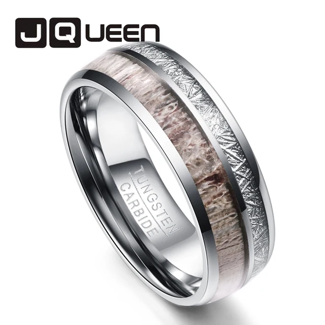 Us 42 91 8mm Wide Wedding Bands For Men Polished Dome Double Slotted Inlaid Meteorite True Antlers Tungsten Steel Ring T081r In Rings From Jewelry