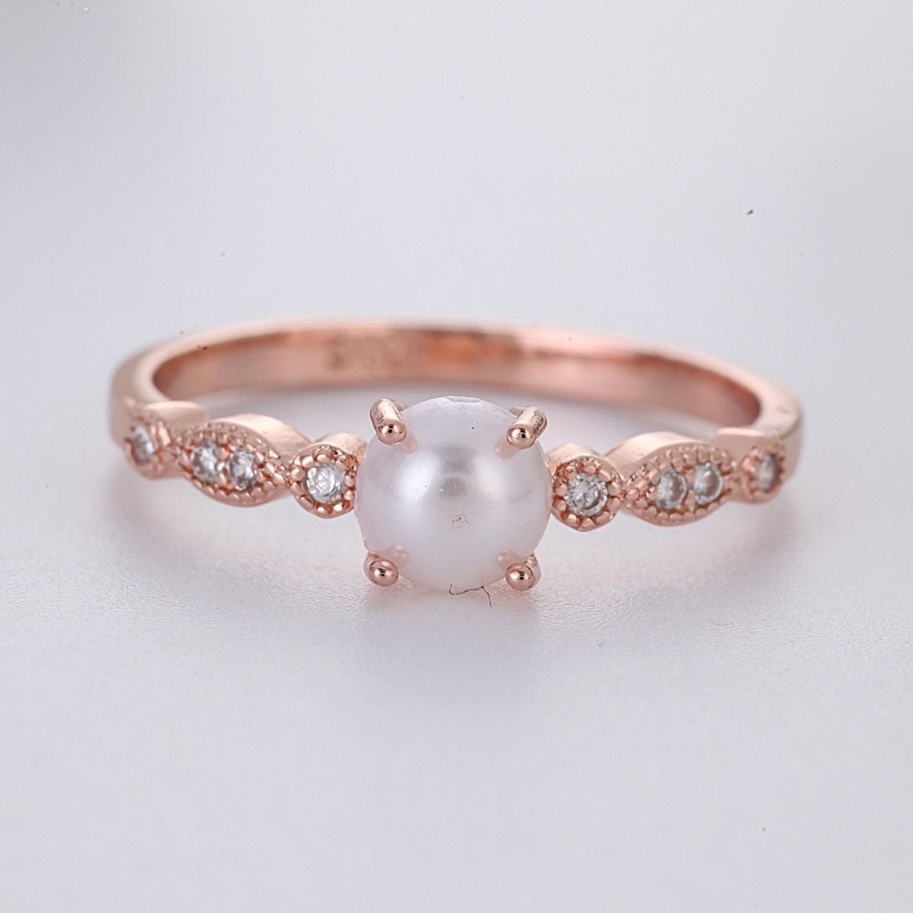 Vintage Rose Gold Pearl Rings For Women Wedding Engagement Ring Crystal Luxury Jewelry Bague Femme Gifts Anillos Mujer O3d101